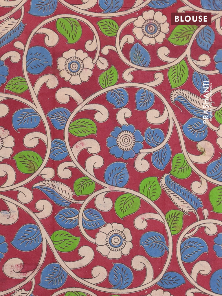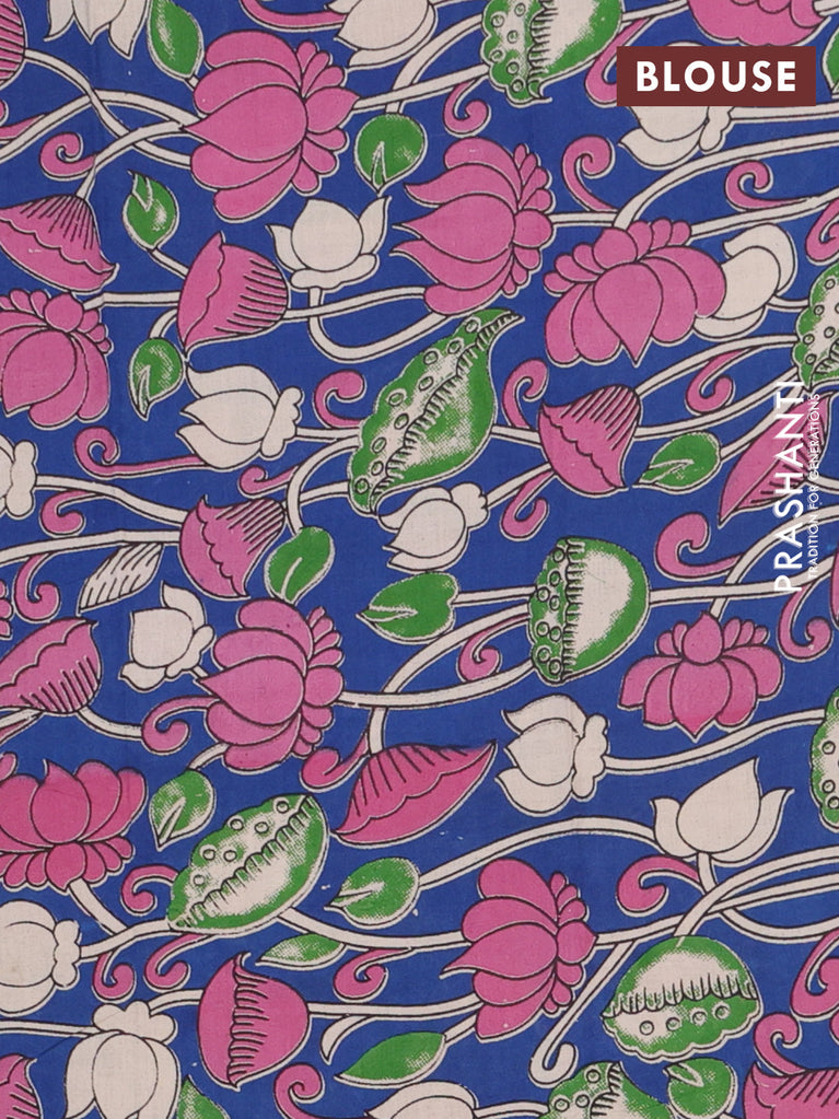 Bengal soft cotton saree magenta pink and blue with plain body and zari woven border