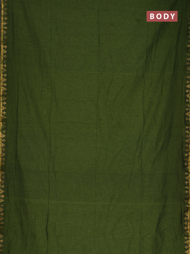 Bengal soft cotton saree green with plain body and zari woven piping border