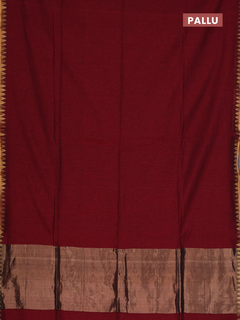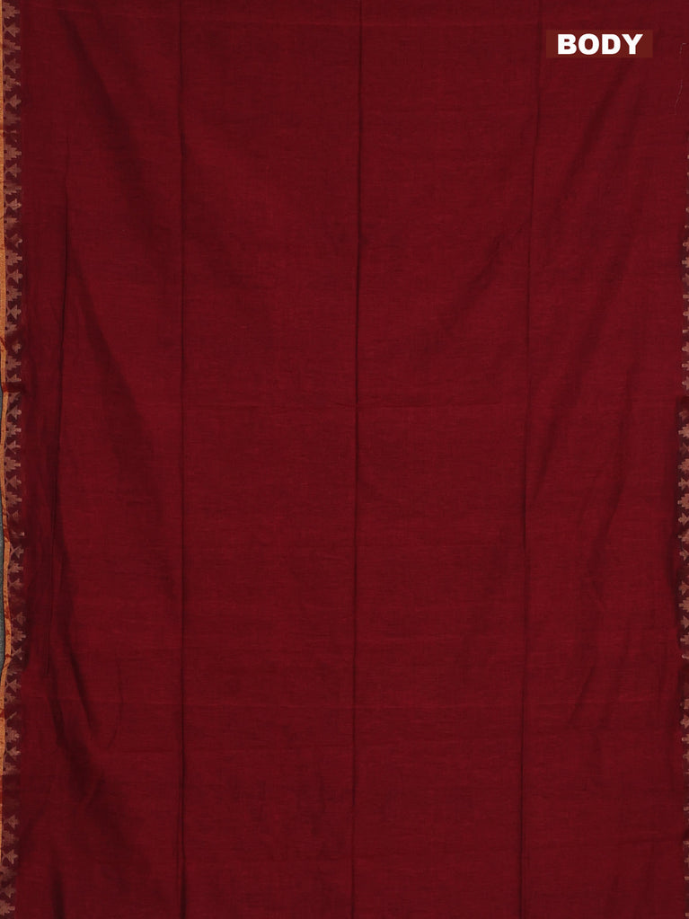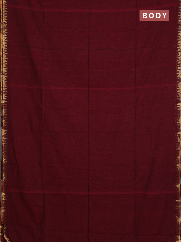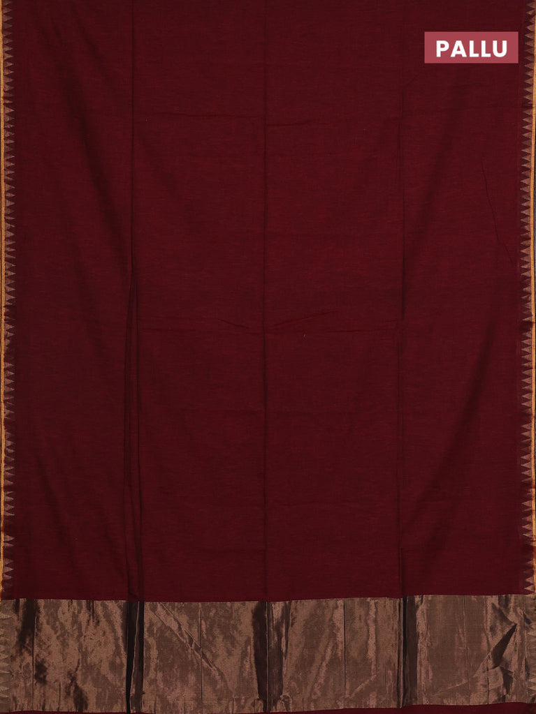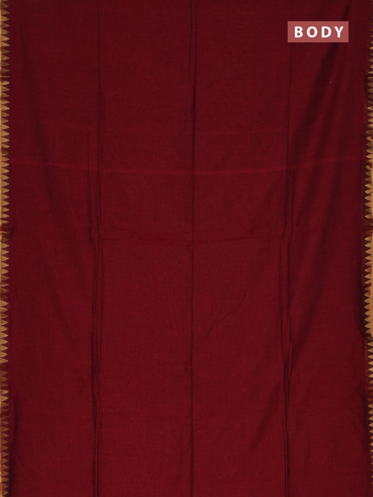Bengal soft cotton saree maroon with plain body and zari woven border