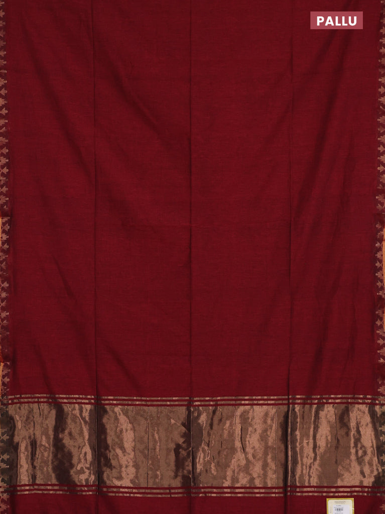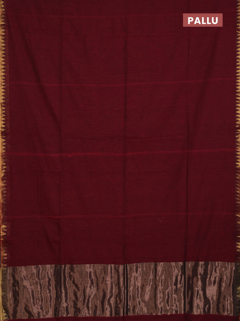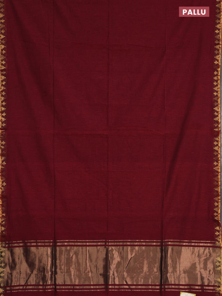 Bengal soft cotton saree maroon and yellow with plain body and zari woven border
