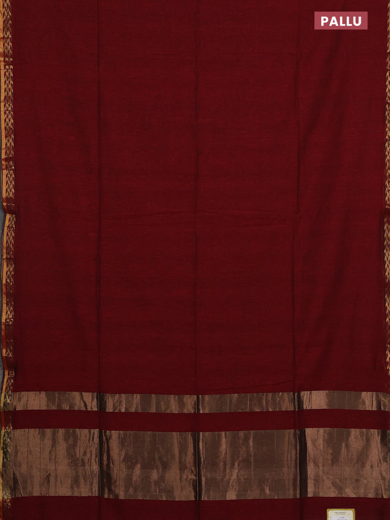 Bengal soft cotton saree maroon and green with plain body and zari woven border