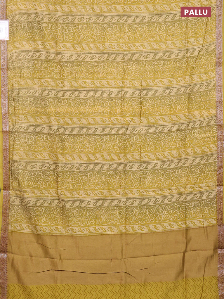 Chanderi silk cotton saree sandal mustard shade and green shade with allover prints and banarasi style border