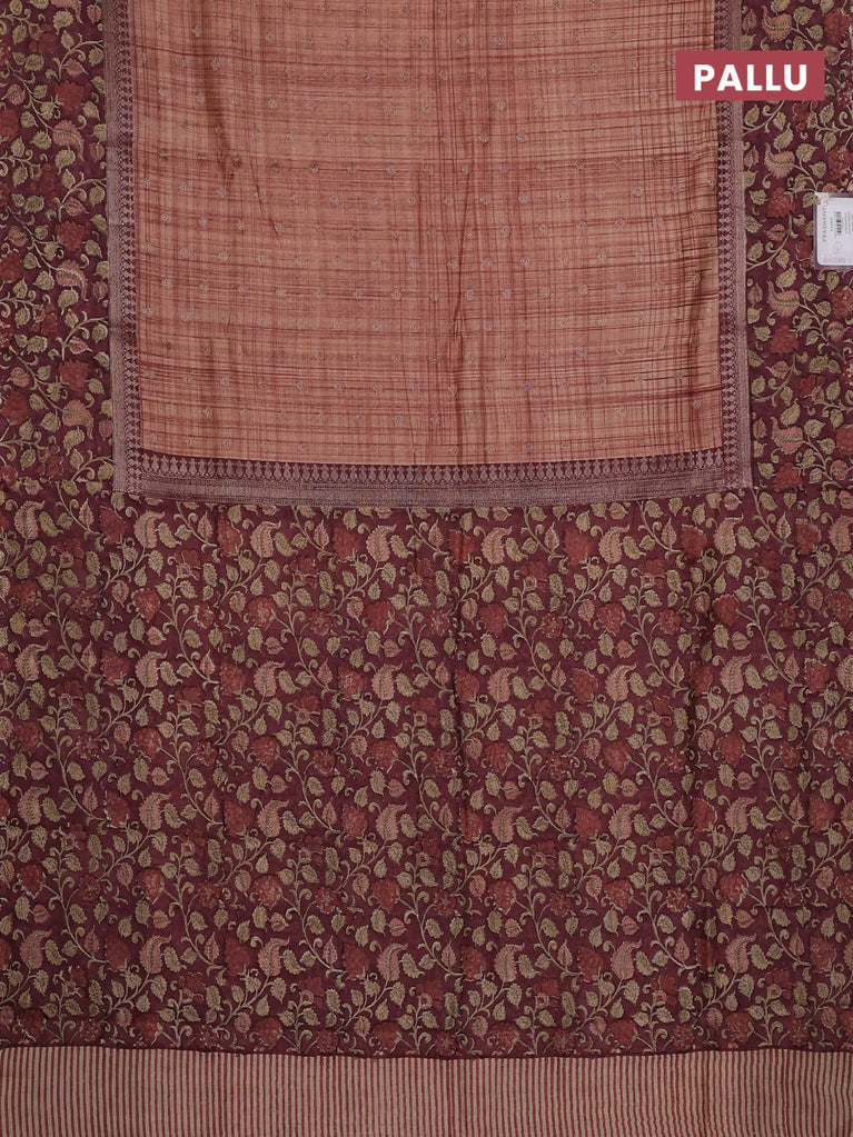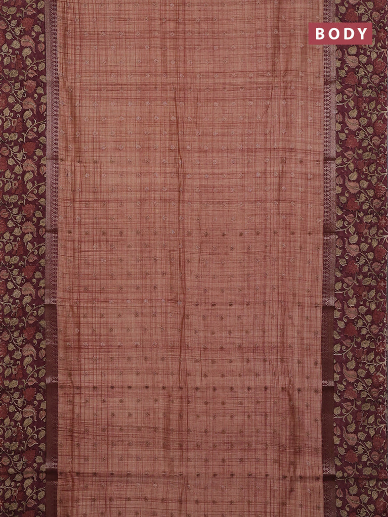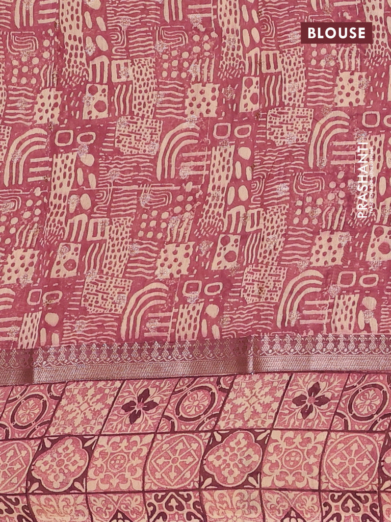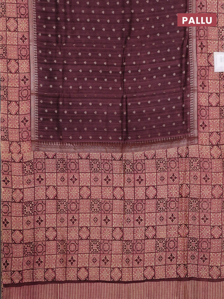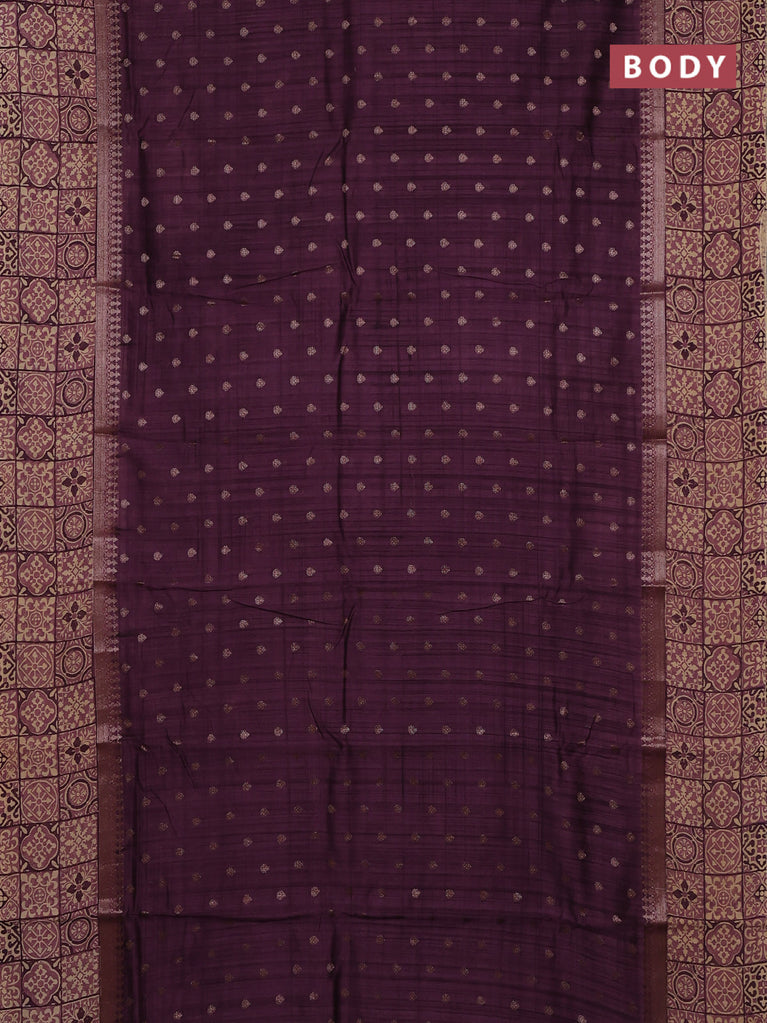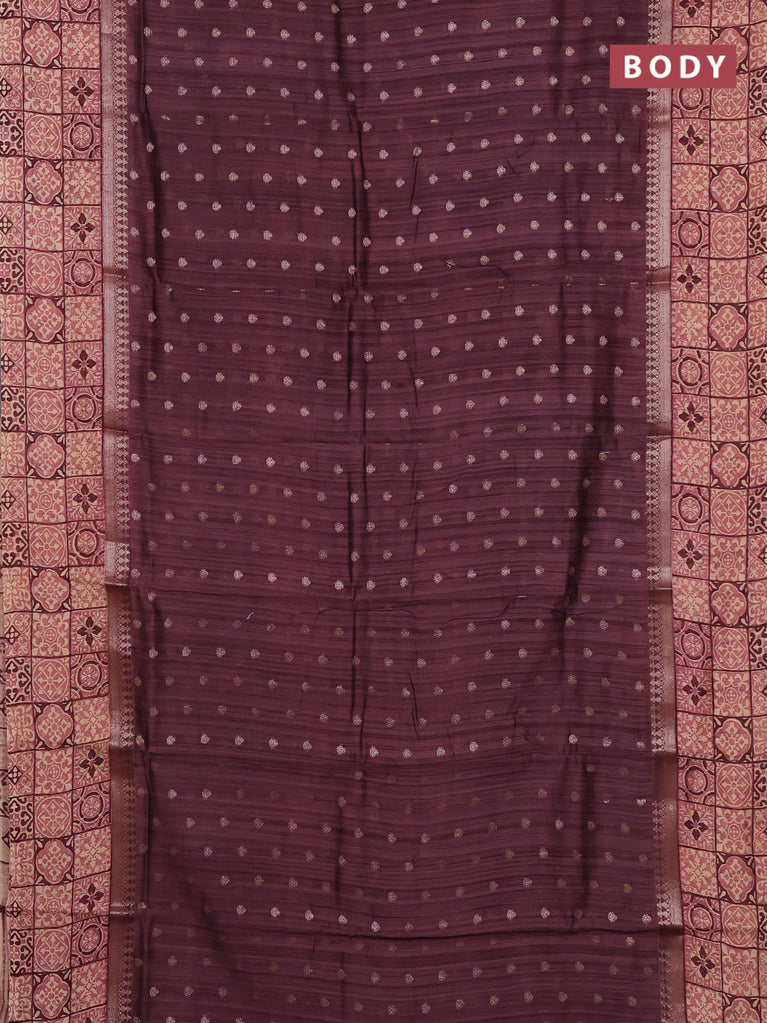 Chanderi silk cotton saree wine shade and beige with allover zari buttas and printed border
