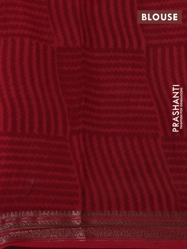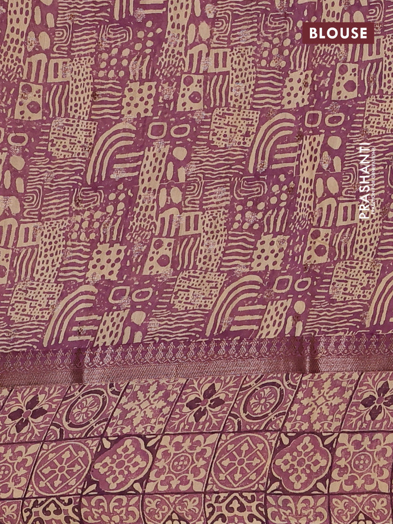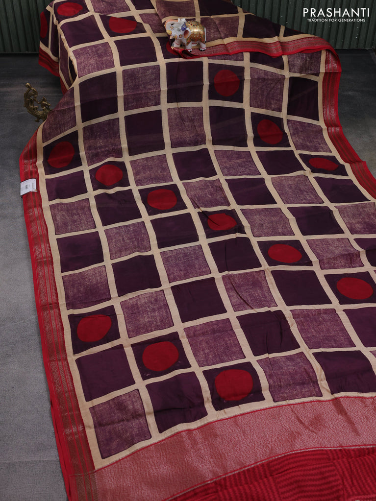 Chanderi silk cotton saree sandal jamun shade and red with allover geometric prints and banarasi style border