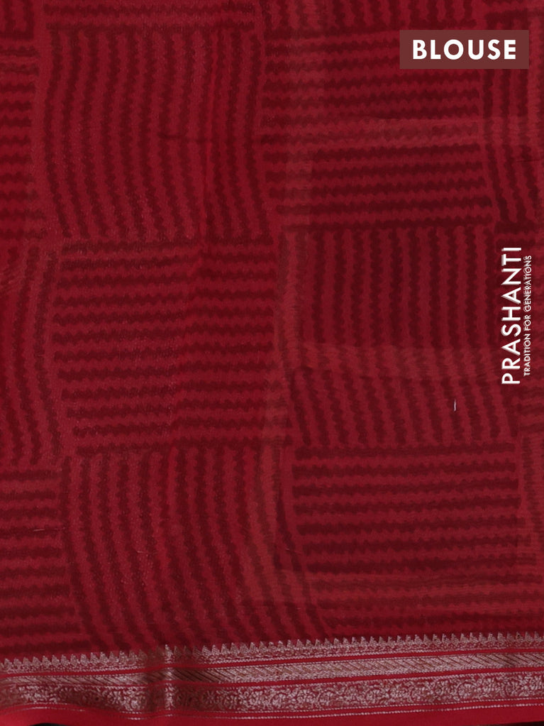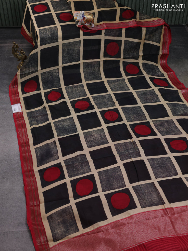 Chanderi silk cotton saree sandal black and red with allover geometric prints and banarasi style border