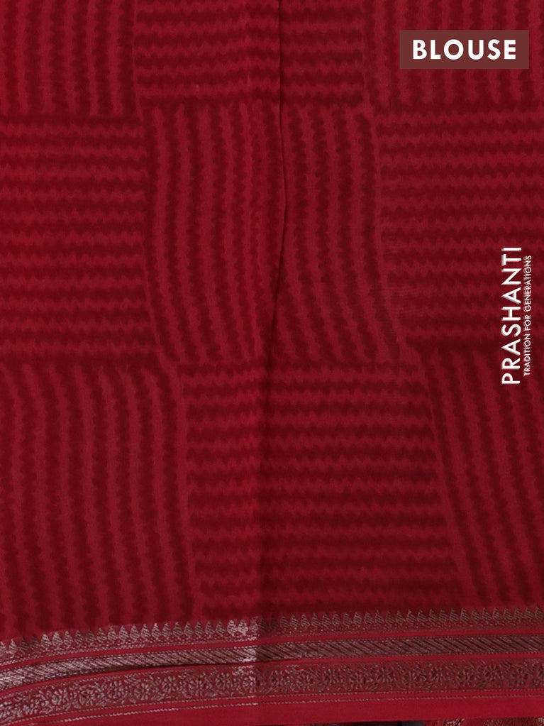 Chanderi silk cotton saree sandal sap green and red with allover geometric prints and banarasi style border