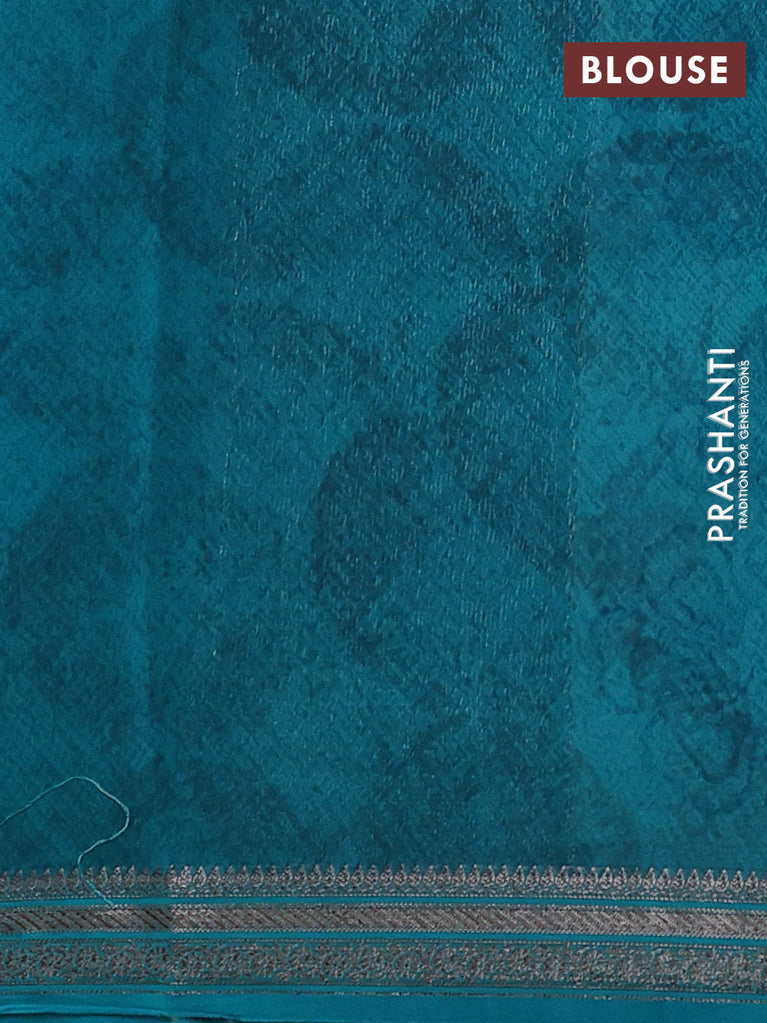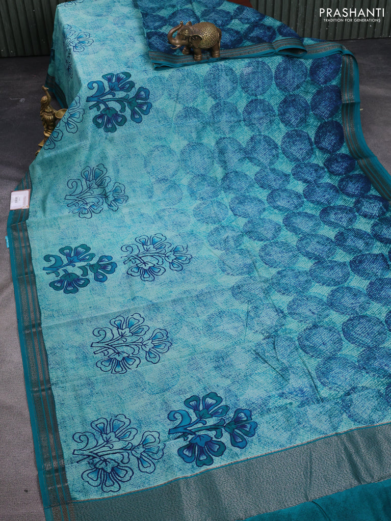 Chanderi silk cotton saree teal blue and teal green with allover prints and banarasi style border