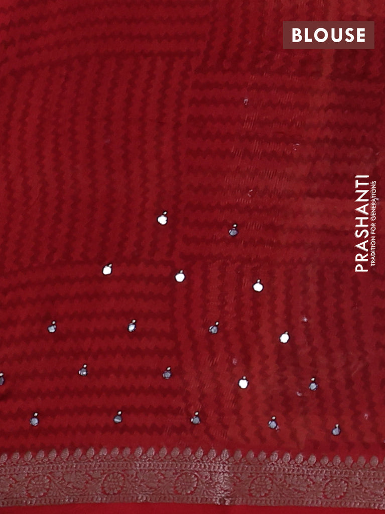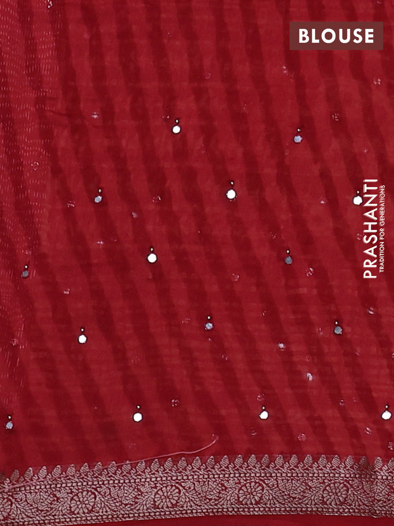 Chanderi silk cotton saree sandal wine shade and kumkum red with allover geometric prints & mirror work and woven border