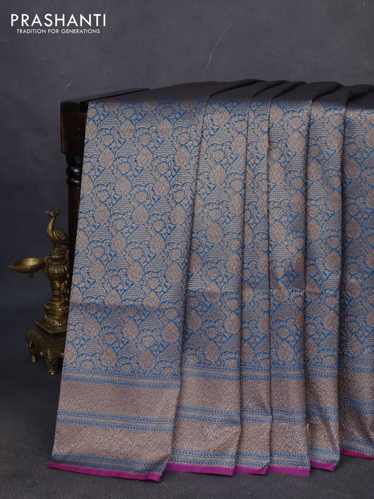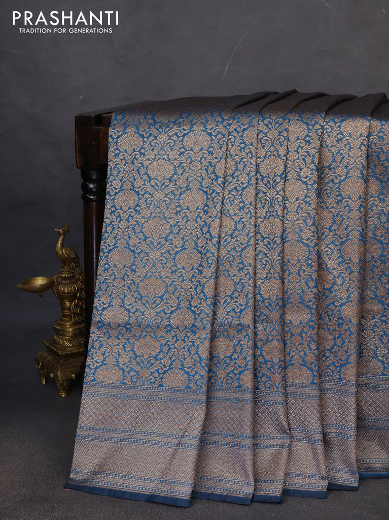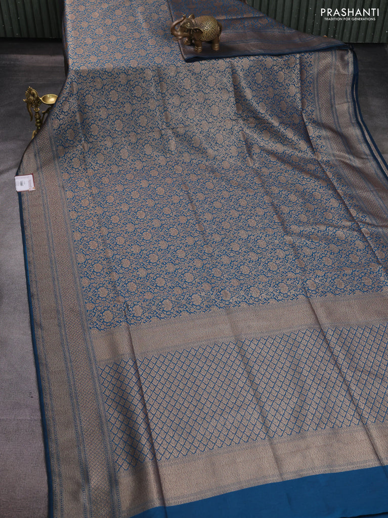 Banarasi semi katan saree peacock blue with allover thread & zari woven brocade pattern and woven border