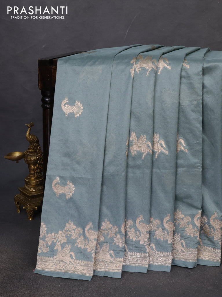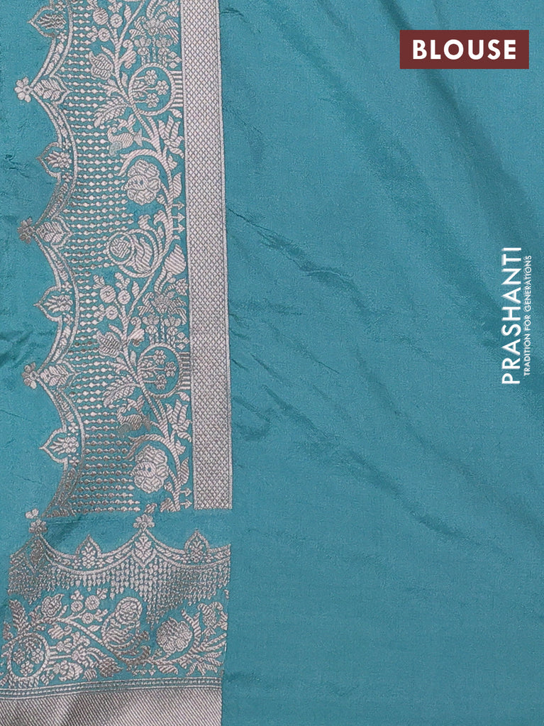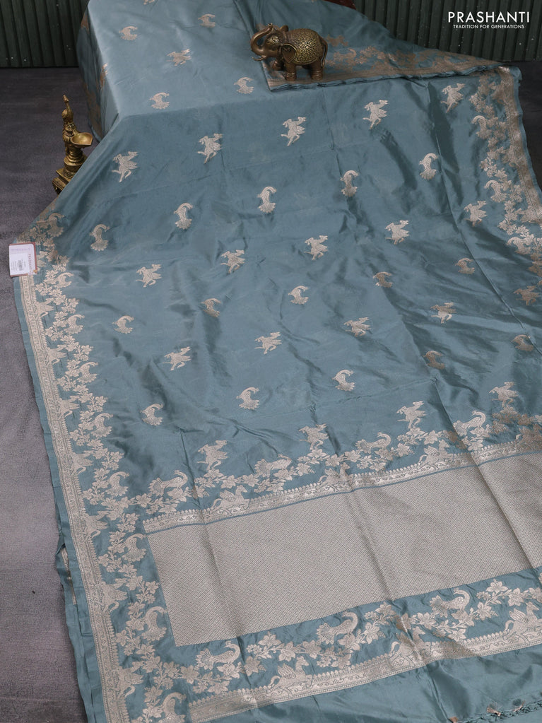 Banarasi semi katan saree peacock blue with allover thread & zari woven brocade weaves and woven border