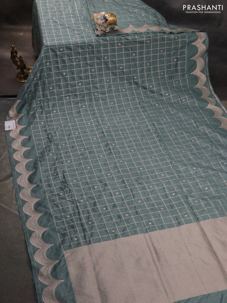 Banarasi semi katan saree pastel blue with allover zari checks and zari woven border