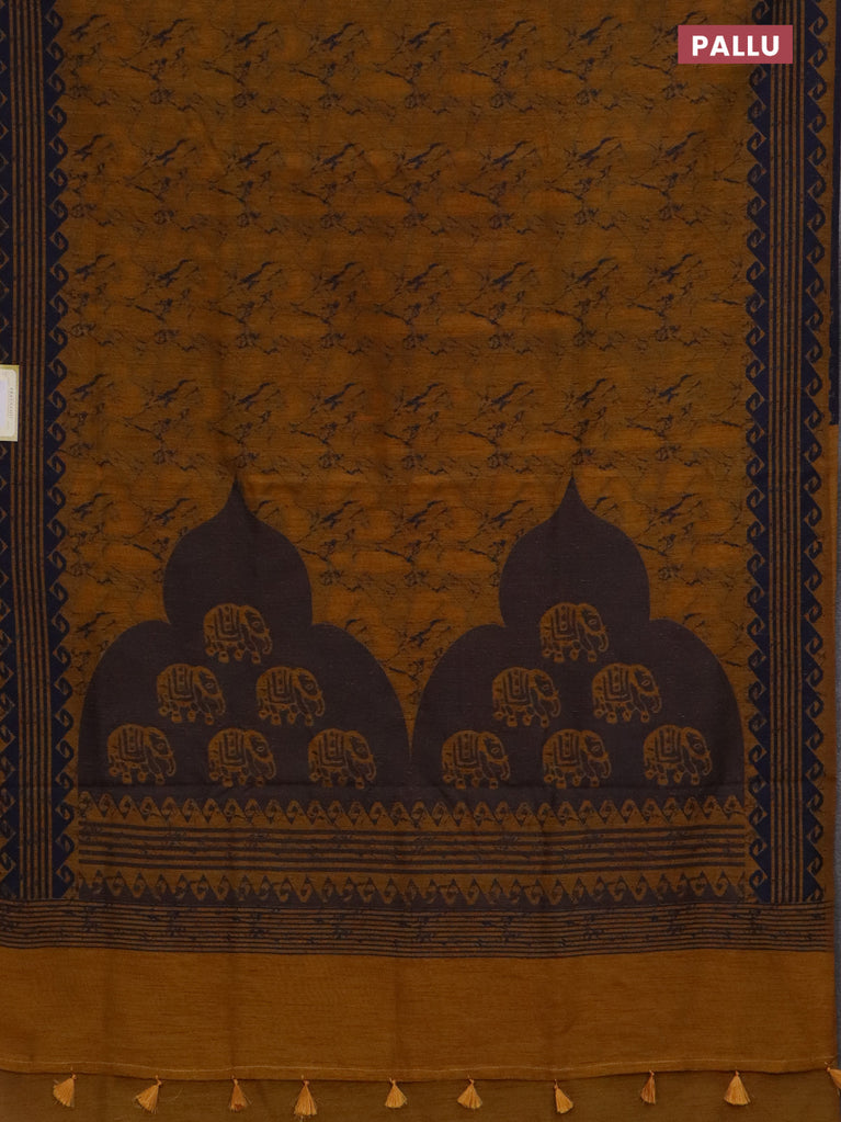Banarasi semi matka saree mustard yellow and navy blue with allover thread weaves and thread woven border