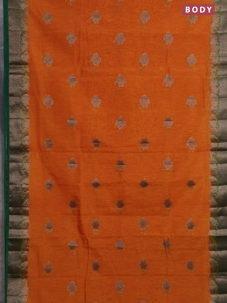 Banarasi semi matka saree mustard yellow and green with thread & zari woven buttas and banarastyle border