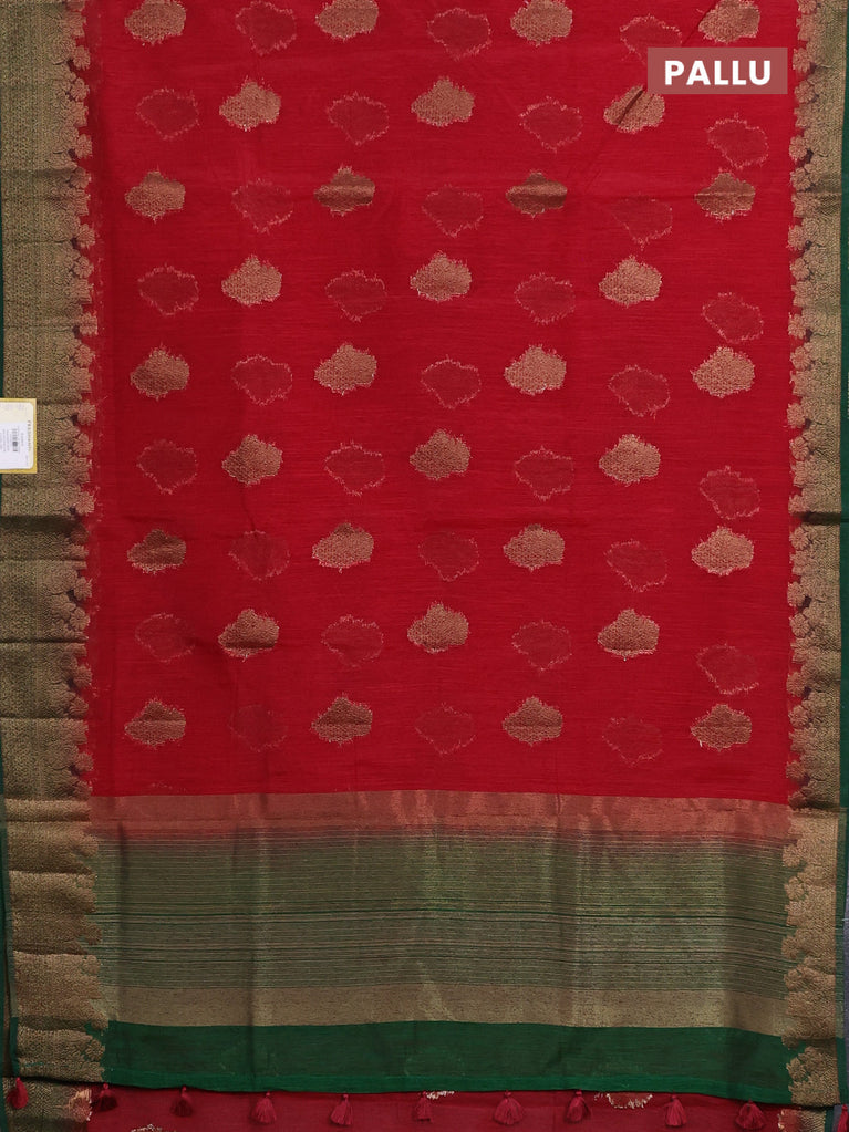 Banarasi semi matka saree red and green with thread & zari woven buttas and banarasi style border
