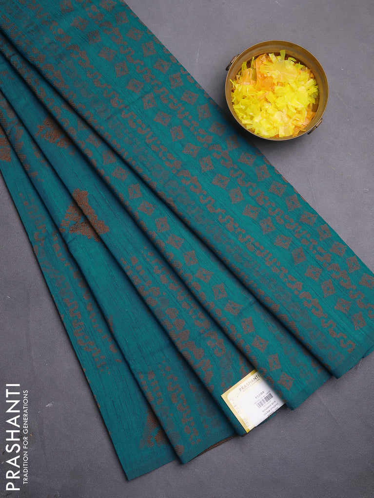 Banarasi semi matka saree teal blue shade with allover thread weaves in borderless style