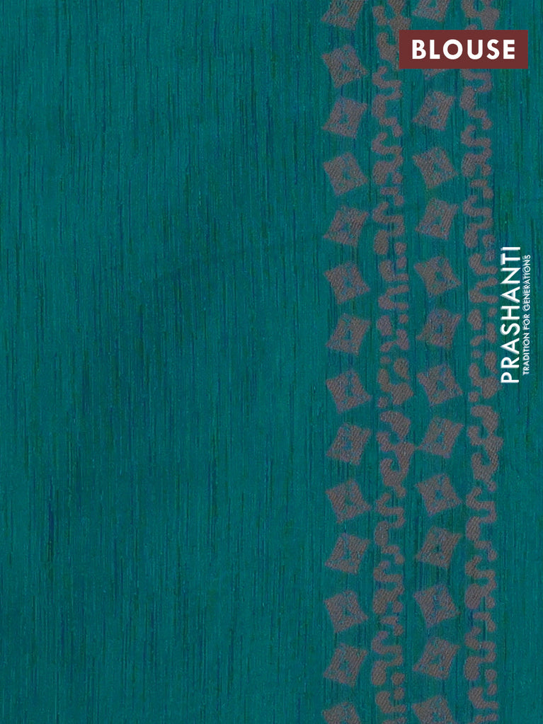 Banarasi semi matka saree teal green with allover thread weaves in borderless style