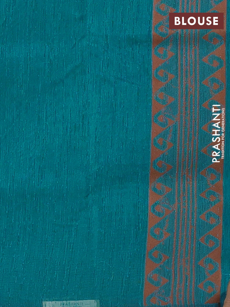 Banarasi semi matka saree teal green shade with allover thread weaves in borderless style