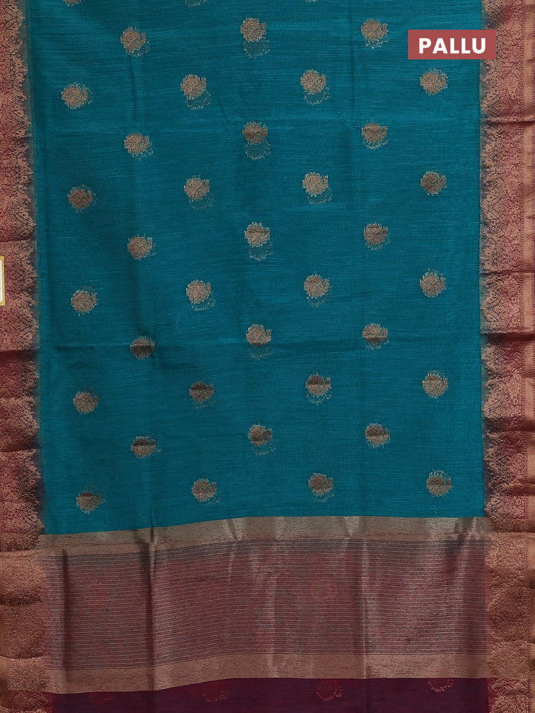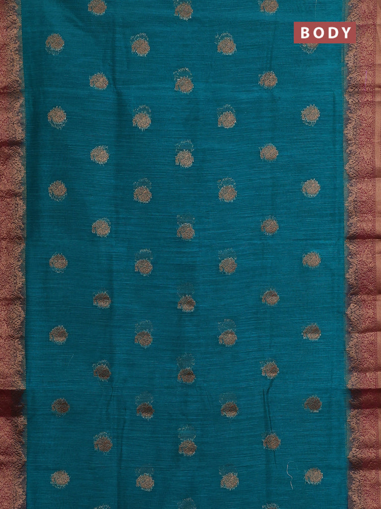 Banarasi semi matka saree teal blue and wine shade with thread & zari woven buttas and banarasi style border