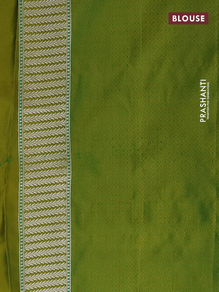Banarasi semi mushru silk saree green with allover zari woven buttas and zari woven border