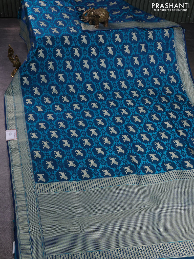 Banarasi semi mushru silk saree dual shade of blue and teal green with allover thread & zari weaves and zari woven border