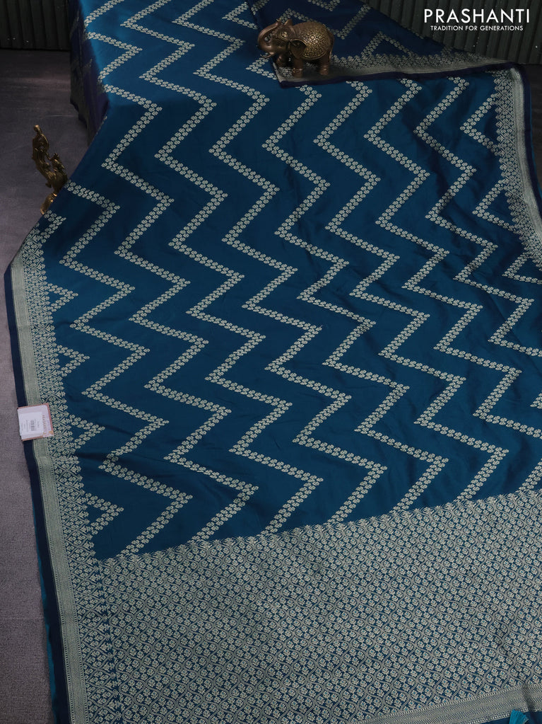 Banarasi semi mushru silk saree dual shade of blue with allover zig zag zari weaves and zari woven border