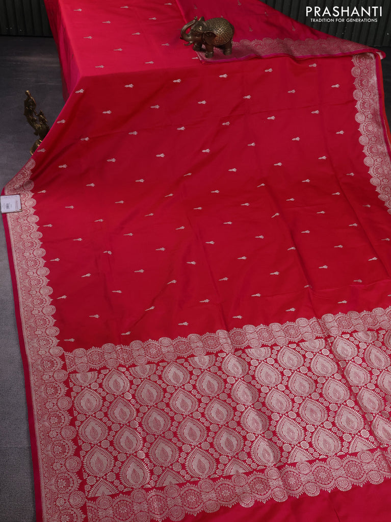 Banarasi semi mushru silk saree dual shade of pink with allover zari woven buttas and zari woven border