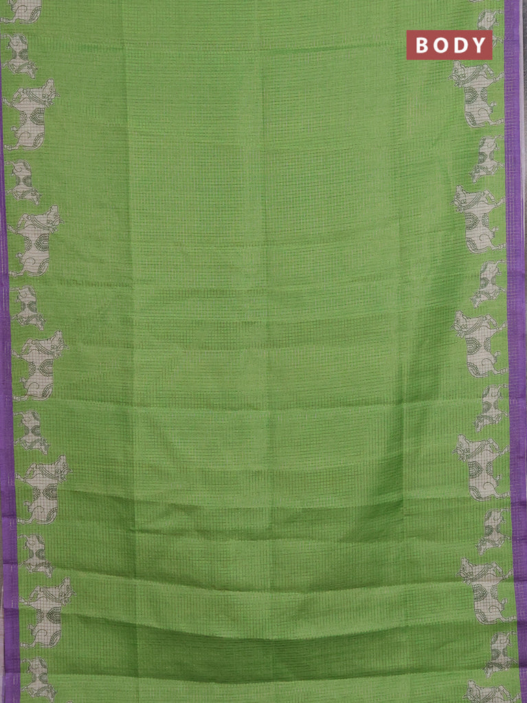 Chappa saree light green and green with allover small zari checked pattern & prints and piping border
