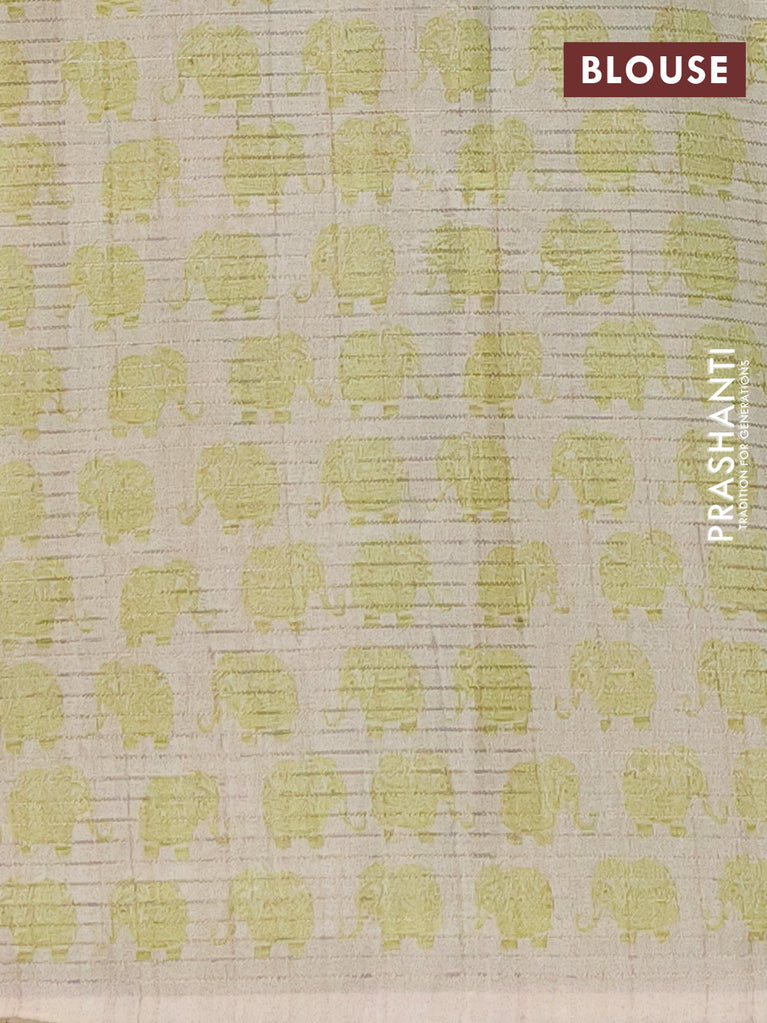 Chappa saree light green and beige with allover small zari checked pattern and elephant butta prints