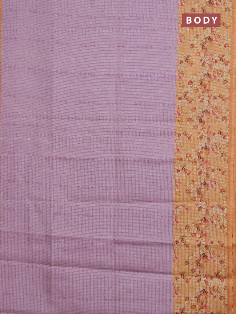 Chappa saree lavender and pale orange with allover small zari checked pattern and floral digital printed pallu