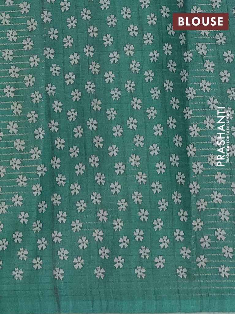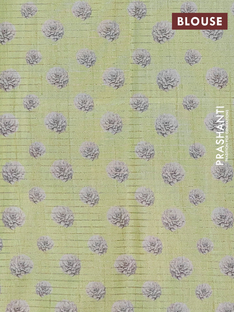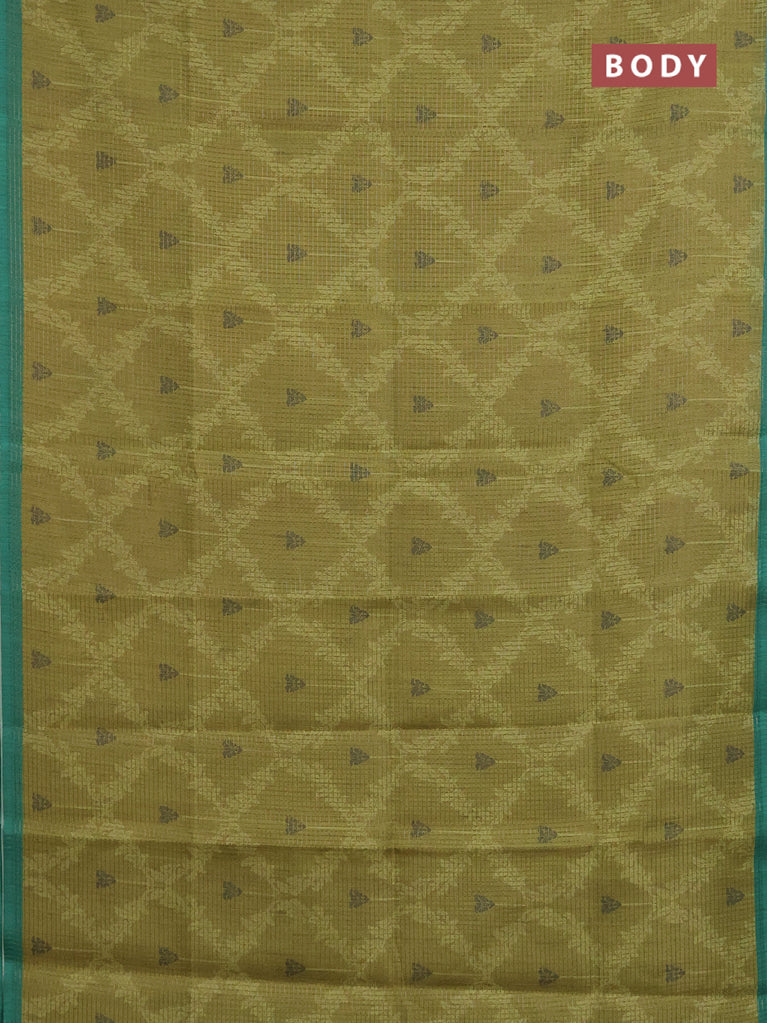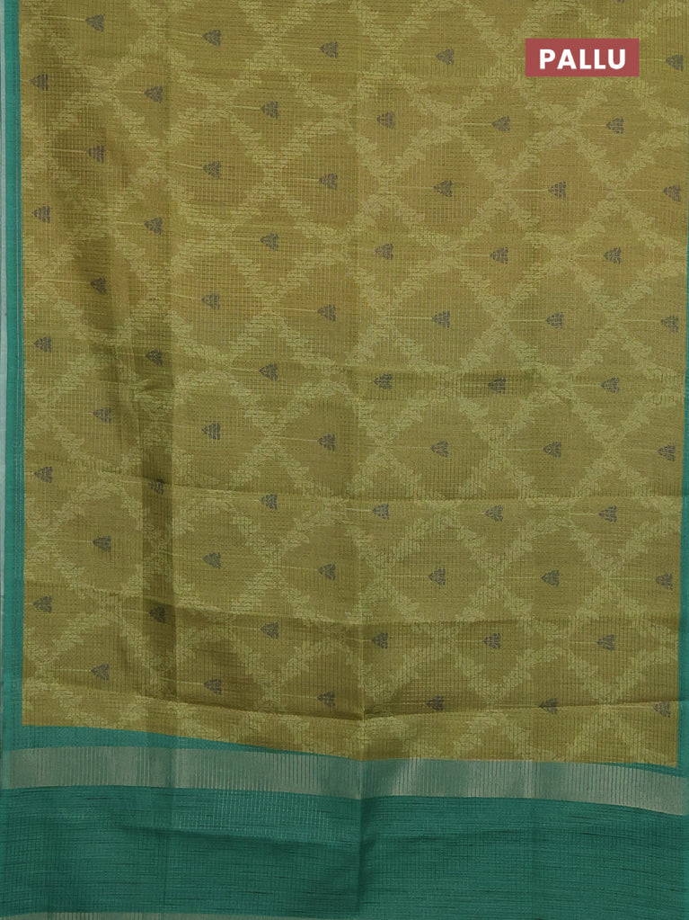 Chappa saree green with allover small zari checked pattern and floral digital printed pallu