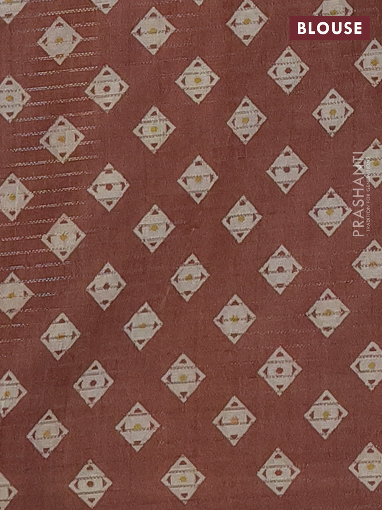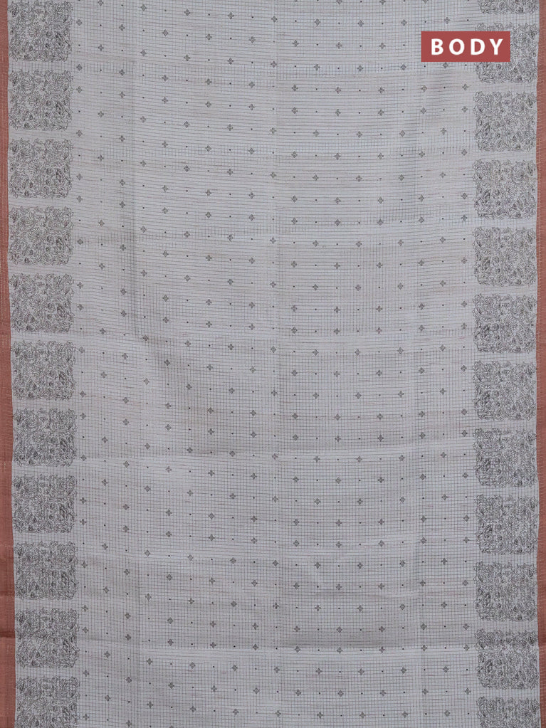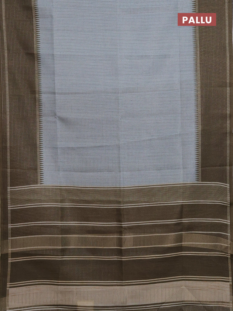 Chappa saree pastel grey and brown with allover small zari checked pattern & butta prints and printed border