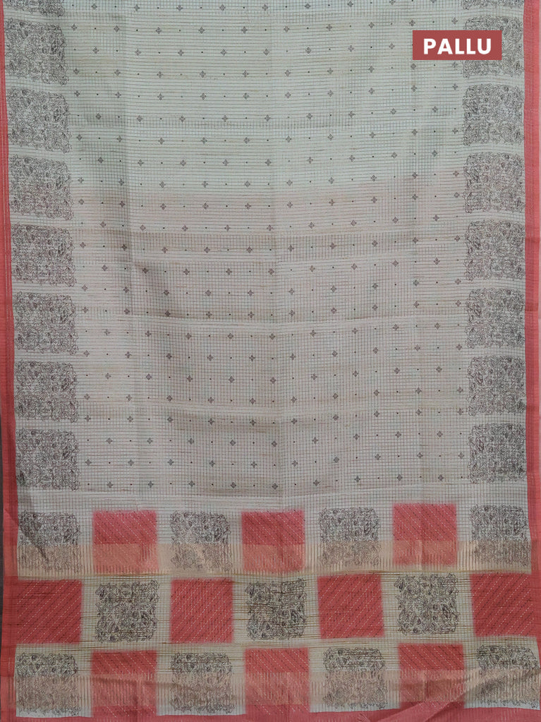 Chappa saree pastel green and red shade with allover small zari checked pattern & butta prints and printed border