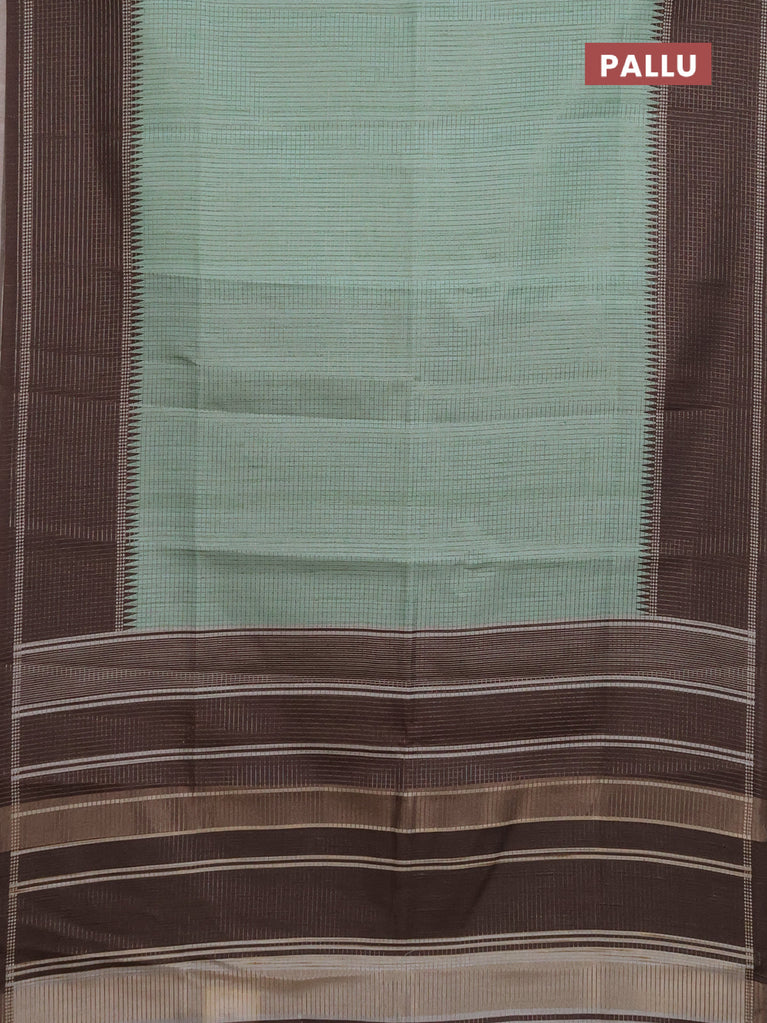 Chappa saree pastel green and brown with allover small zari checked pattern and temple design zari woven border