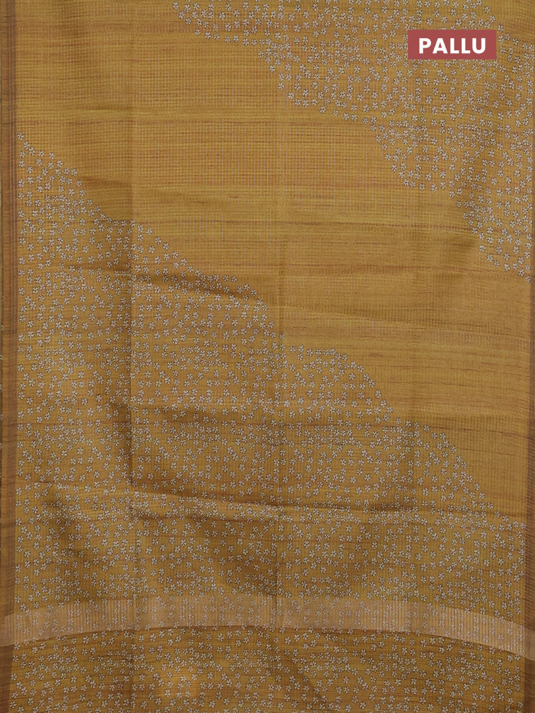 Chappa saree mustard shade with allover small zari checked pattern and floral digital printed pallu