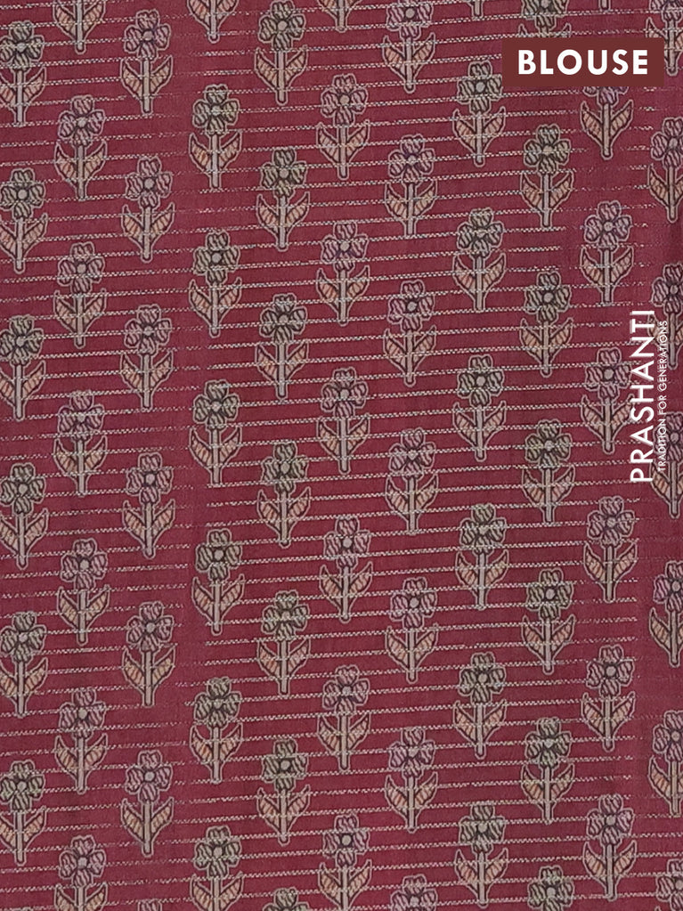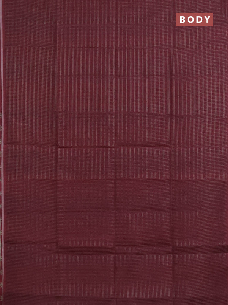 Chappa saree maroon with allover small zari checked pattern and floral digital printed pallu