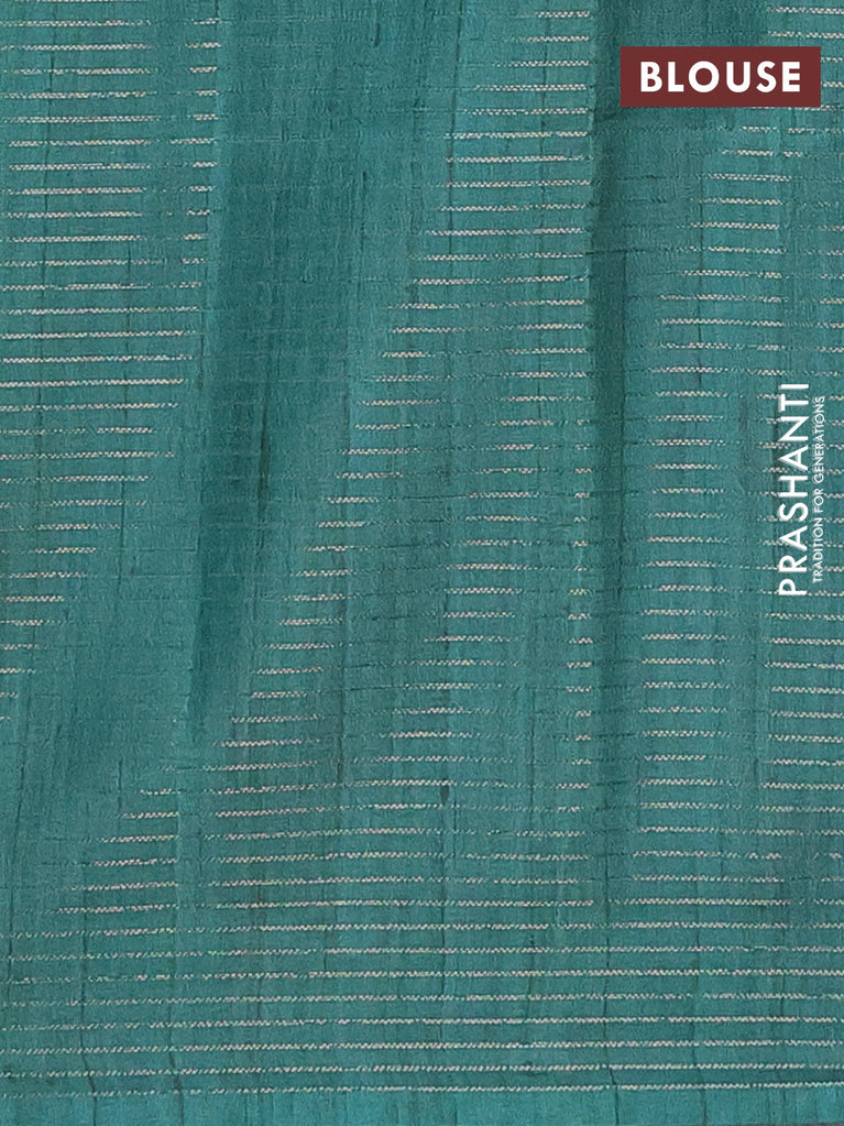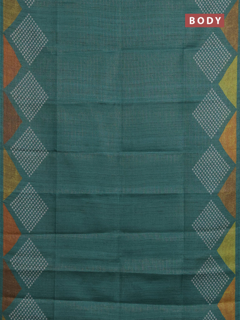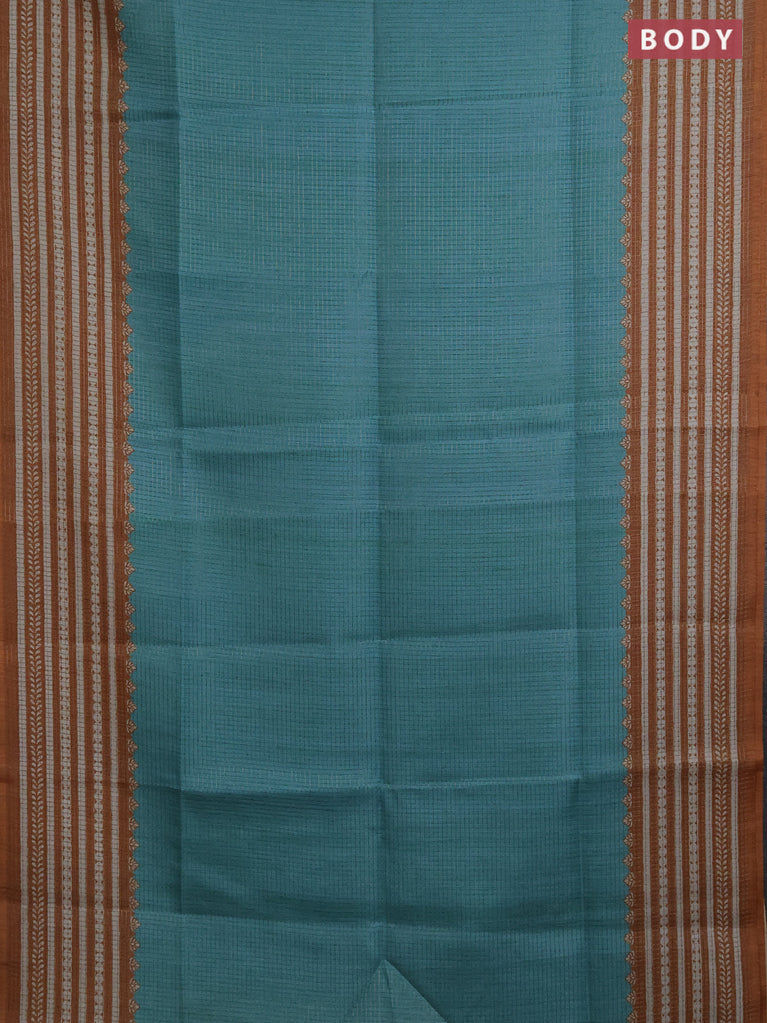 Chappa saree teal blue and cream with plain body and madhubani printed border