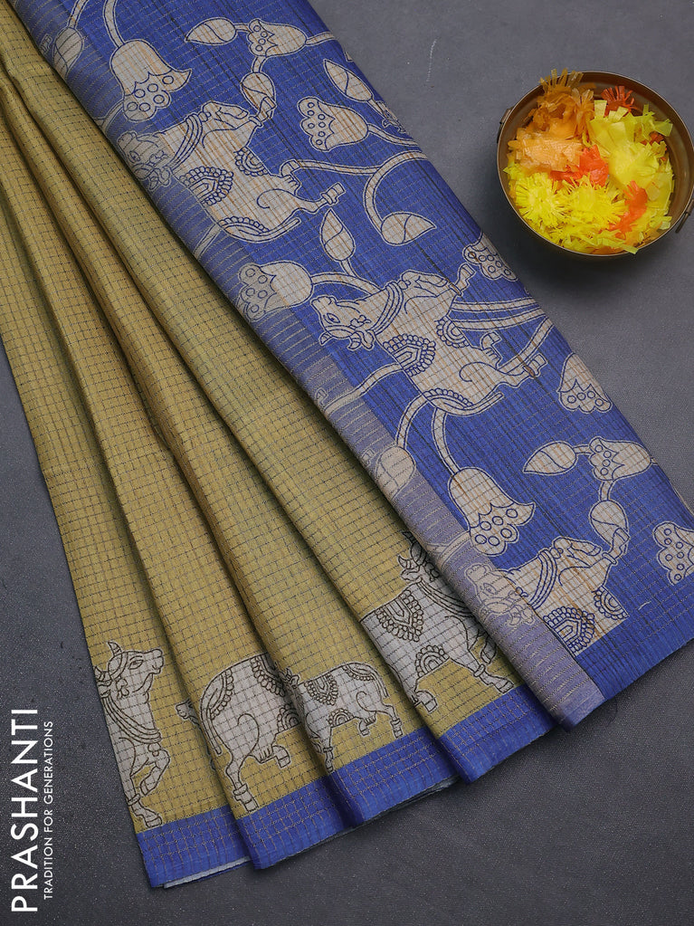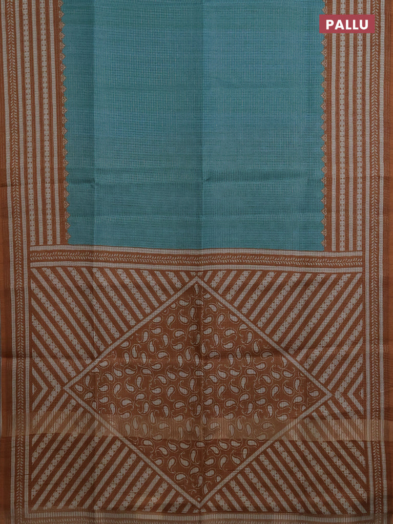 Chappa saree teal blue and dark mustard with allover small zari checked pattern and printed border