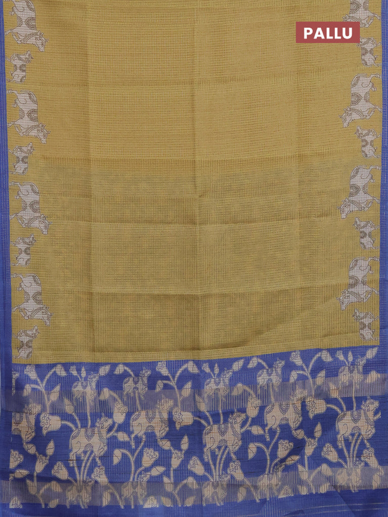Chappa saree yellow and blue with allover small zari checked pattern and pichwai printed pallu