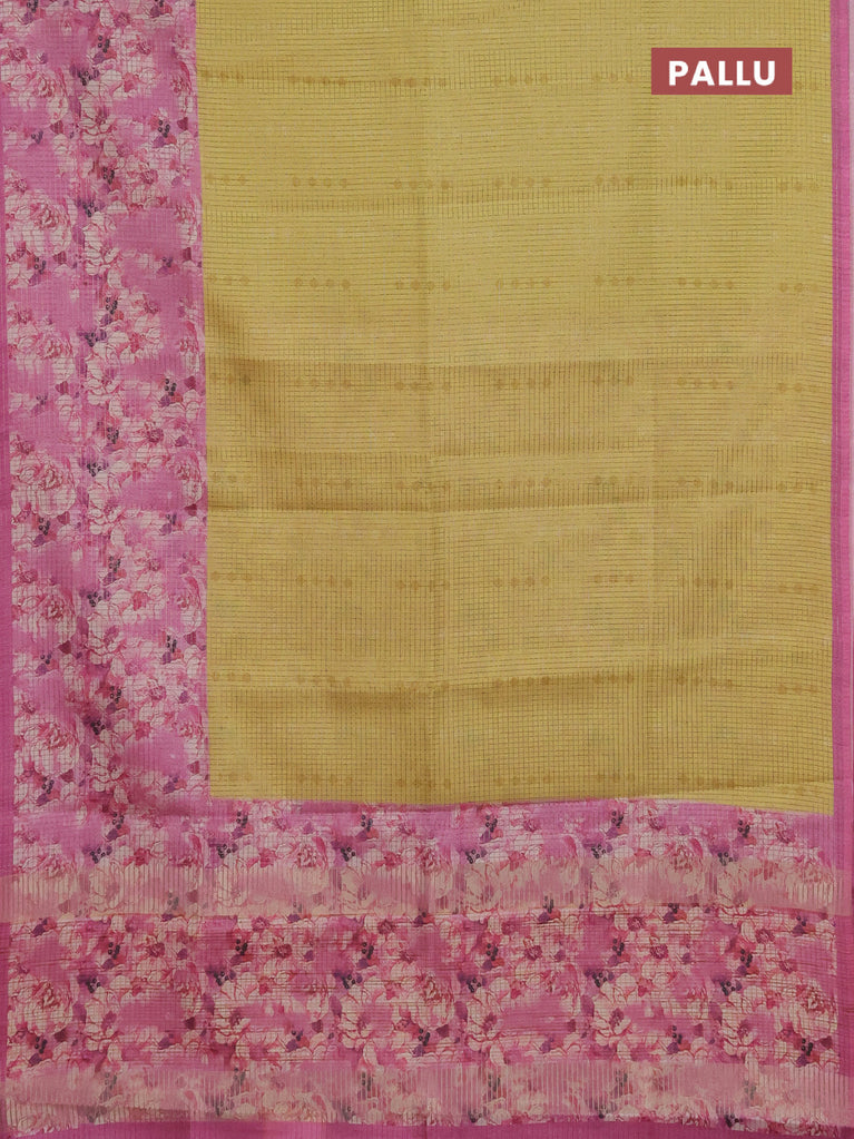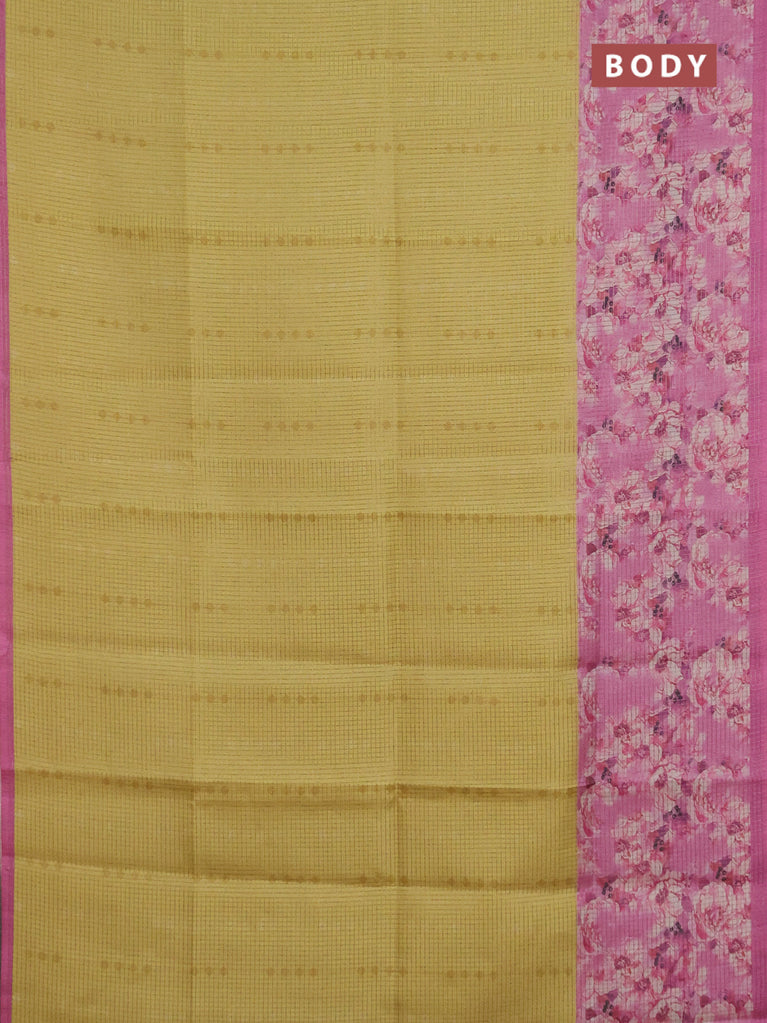 Chappa saree yellow and pink with allover small zari checked pattern and floral digital printed pallu