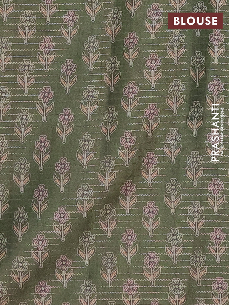 Chappa saree sap green and beige with allover small zari checked pattern and madhubani printed pallu