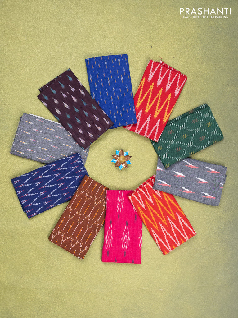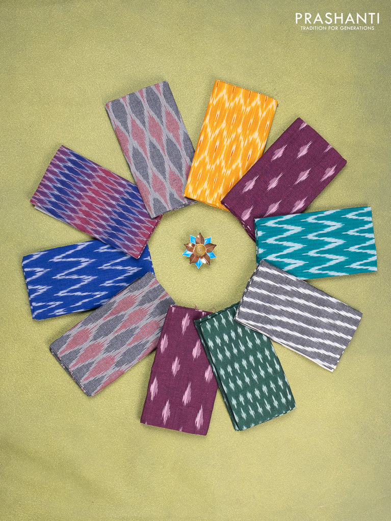Ikat cotton blouse bits multi colour and multi design Pack of 10