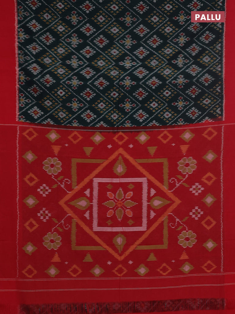 Ikat cotton saree black and red with plain body and rettapet zari woven border