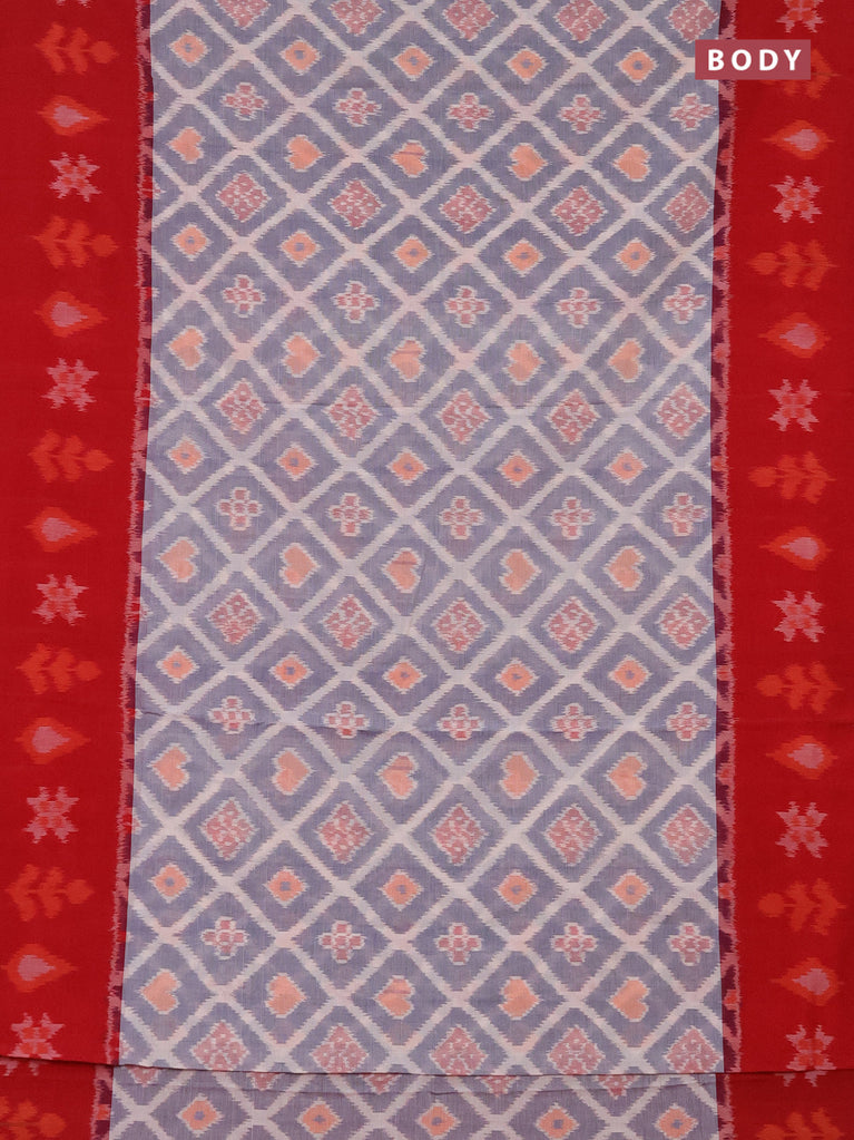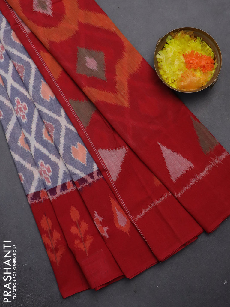 Ikat cotton saree blue shade and red with allover ikat butta weaves and long ikat style border
