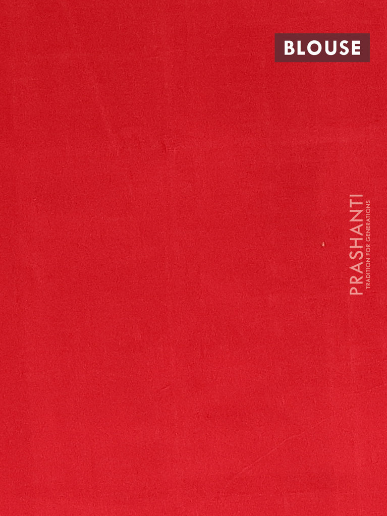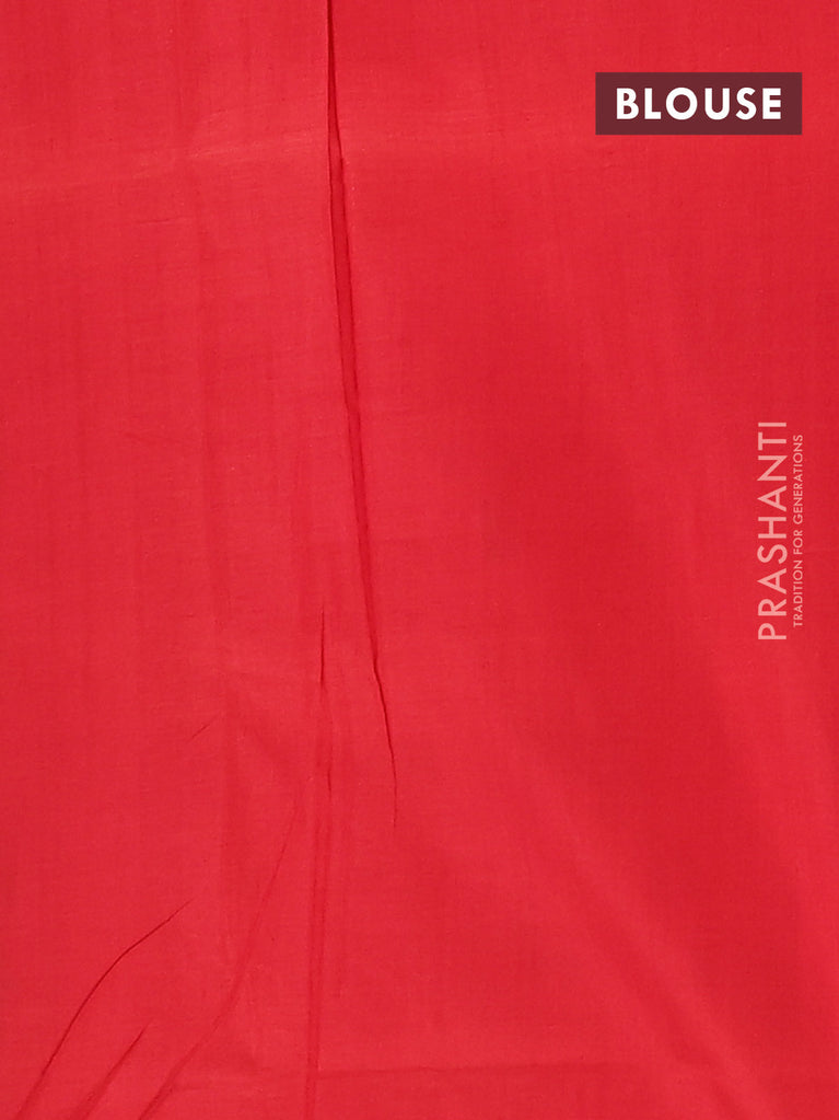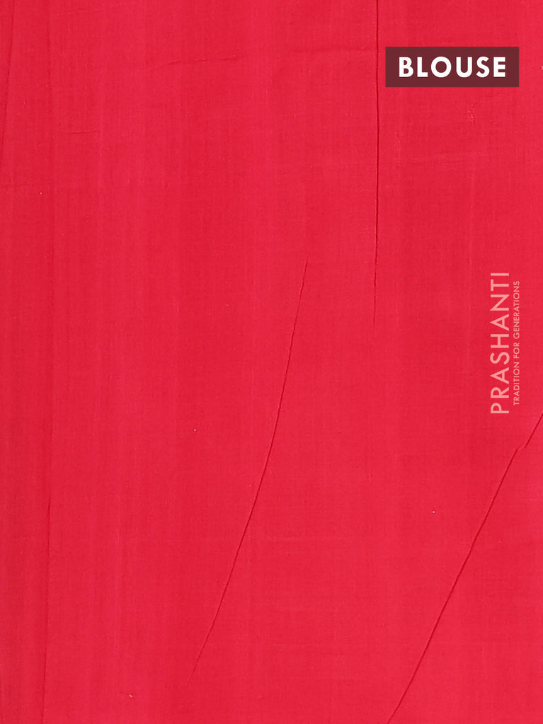 Ikat cotton saree blue and red with allover ikat butta weaves and temple design ikat style border
