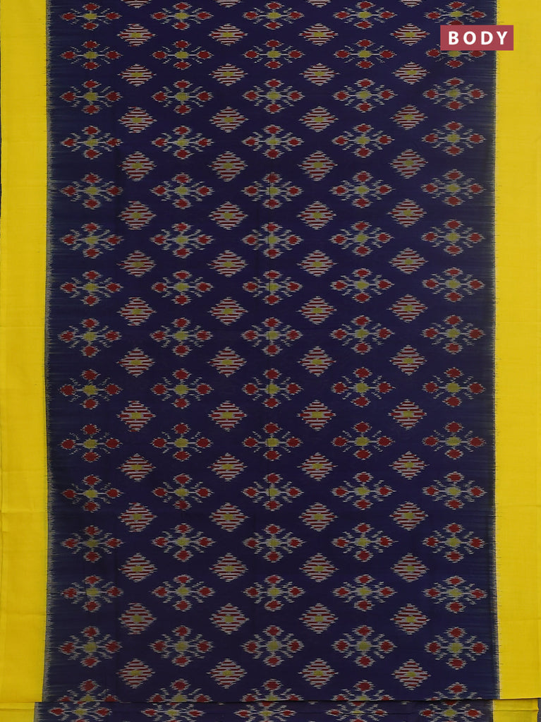 Ikat cotton saree blue and yellow with allover ikat butta weaves and simple border