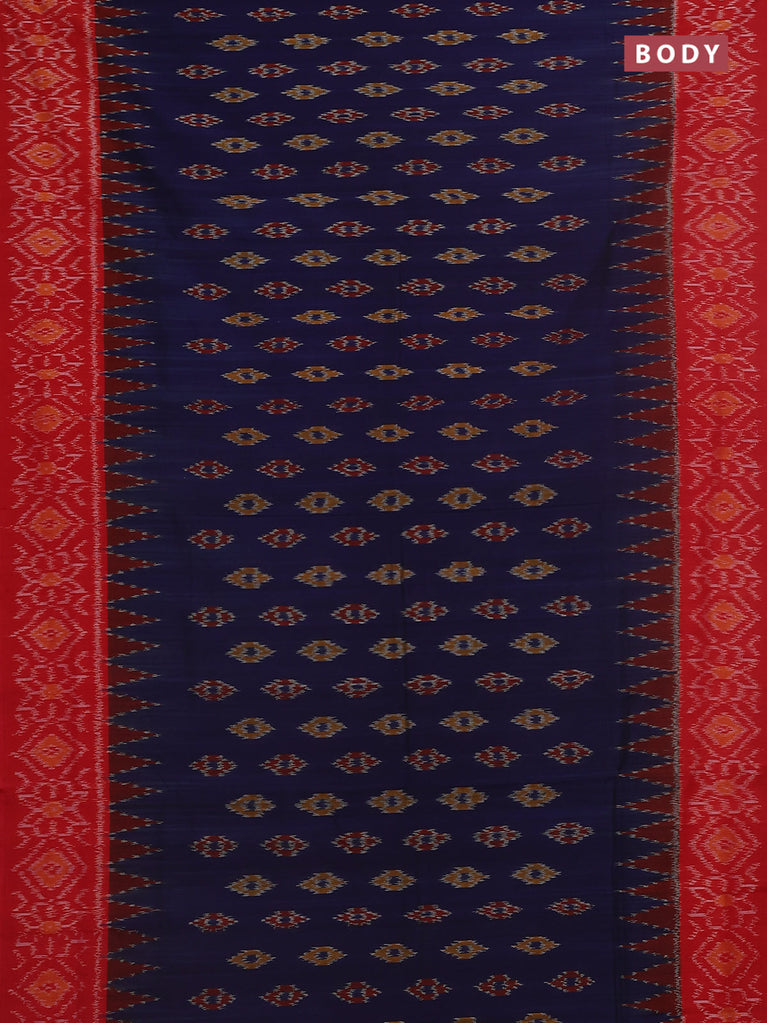 Ikat cotton saree blue and red with allover ikat weaves and long ikat style border
