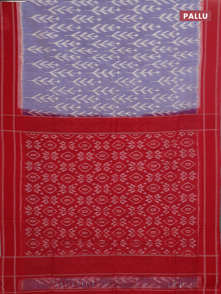Ikat cotton saree blue and red with allover ikat weaves and simple border