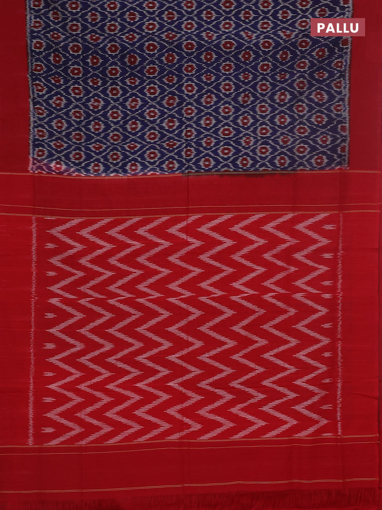 Ikat cotton saree blue shade and red with allover ikat weaves and rettapet border