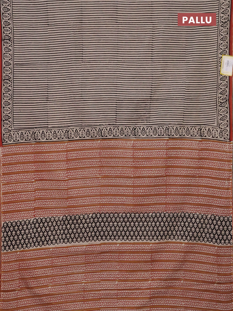 Jaipur cotton saree beige and black with allover stripe pattern and printed border