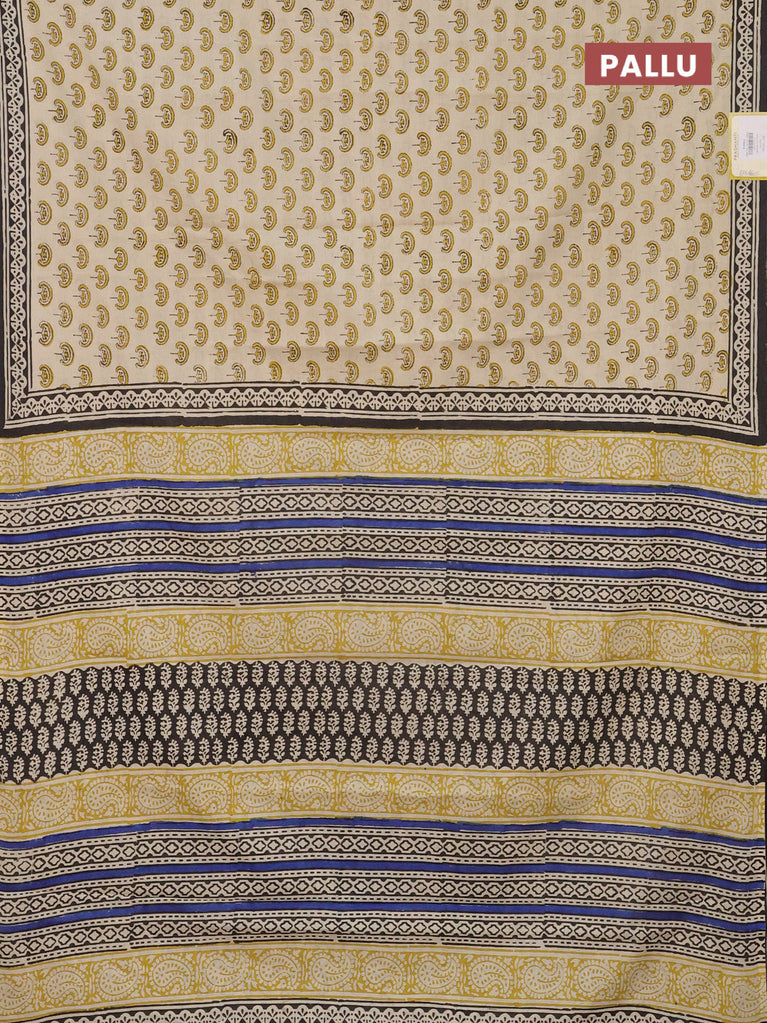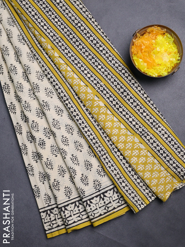 Jaipur cotton saree beige and black with allover butta prints and printed border